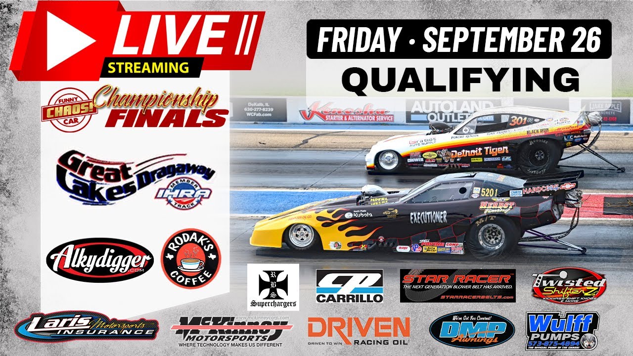 FUNNY CAR CHAOS is about to light up at Great Lakes Dragaway! It’s pro qualifying and much more. The action on Friday for Funny Car Chaos at Great Lakes Dragaway will be intense with funny cars of all different combinations. Enjoy this live presentation brought to you by our great partners below.